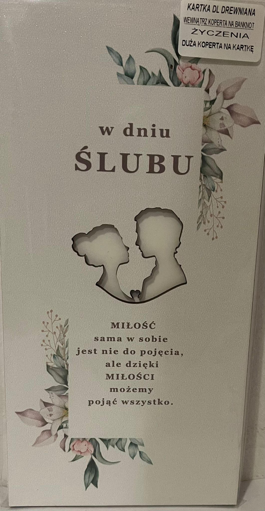 Delikatne, kwiatowe akcenty połączone z wyciętym motywem zakochanej pary tworzą harmonijną kompozycję, która idealnie oddaje magię dnia ślubu.